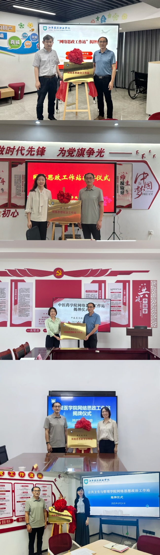胡勇与各学院党总支负责人共同为工作站揭牌。各党总支负责人表示,将充分发挥学院专业优势,组建由辅导员和专业教师共同参与的工作团队,推动网络思政与医药卫生人才培养深度融合,努力把工作站建设成为引导学生成长的重要线上平台。