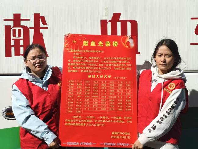 近日,盐城市中心血站专程向我院送来无偿献血“光荣榜”,对我院在无偿献血活动中作出的贡献和展现的组织能力表示高度赞赏。本次活动由公共卫生与管理学院苏医“血液银行”检验社团独立策划并承办,不仅是一次传递爱心的公益行动,也成为展现医学检验技术专业人才培养成果、弘扬志愿服务精神的生动实践。