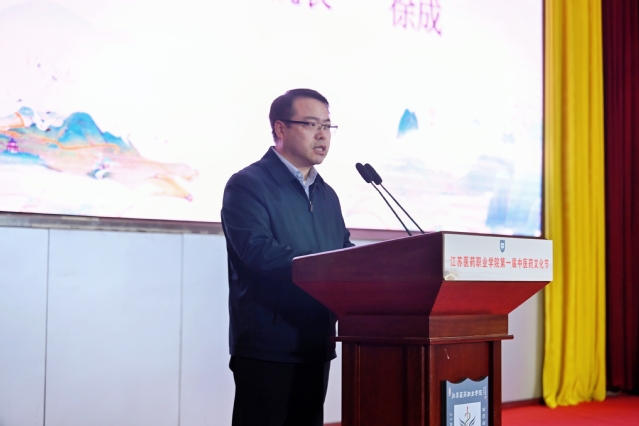 梅春林作为校院合作单位代表致辞。他对我院中医药文化节的开幕表示诚挚祝贺。他表示,此次参与文化节,既是校院情谊的深化,更是“资源共享、优势互补”的再升级,东台市中医院将持续深化与学校的“协同育人”合作,共建教学基地,共研校地协同创新项目,共享中医药典籍资源,助力中医药学子成长成才。