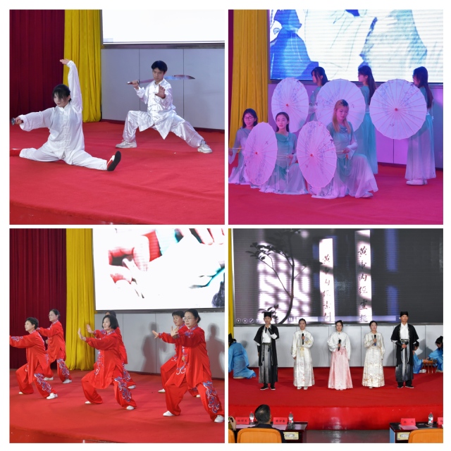 开幕式演出环节亮点纷呈。盐城德馨医院职工代表演绎的八段锦,将 “动静相宜、刚柔并济” 的养生智慧展现得淋漓尽致;学生代表身着汉服朗诵《大医精诚》,韵味悠长中传递医者仁心;武术表演《鼓舞龙腾》气势磅礴,歌曲串烧《杏林出青花》清新灵动,充分彰显了中医药文化的深厚底蕴与青年学子的蓬勃朝气。
