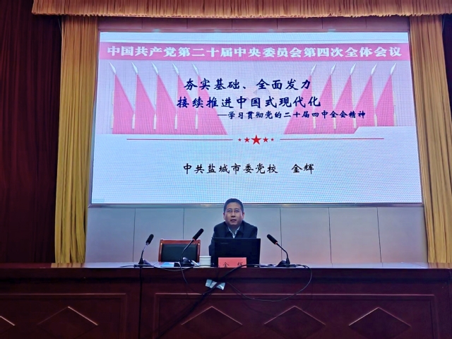 仪式后,中共盐城市委党校马列教研室主任、团委书记金辉受邀为全体学员作《夯实基础、全面发力 接续推进中国式现代化——学习贯彻党的二十届四中全会精神》青马班首场专题讲座。
